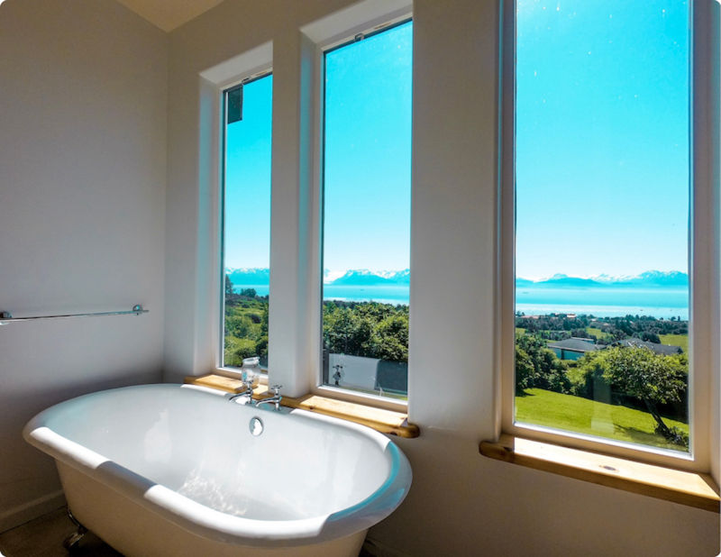 - Luxusní apartmá s vanou, z níž je vidět celý záliv